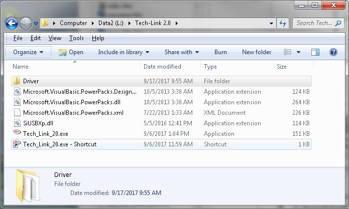 the "Driver" folder under the main folder "Tech-Link 2.0".