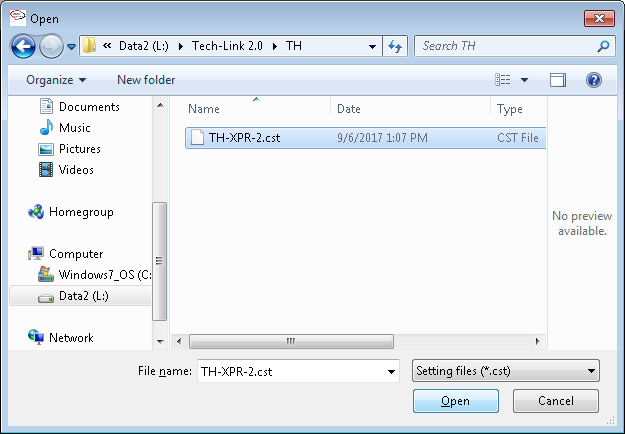 TH-XPR-2.cst is selected. Click Open, wait until the "Load completed